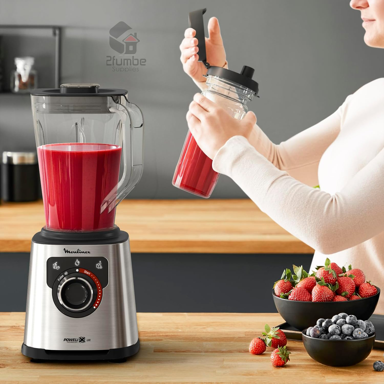 Moulinex PerfectMix + is a high speed blender that brings together powerful blending with a versatile app offering endless inspiration. Exclusive Powelix Life Technology with blades that lasts up to 2X longer comes together with a powerful 1200 W motor for up to 30% faster results..